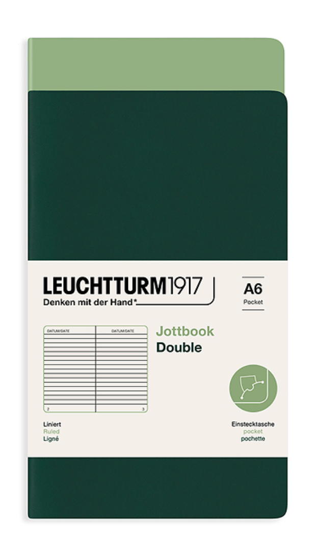 Leuchtturm1917 A6 Pocket Jotbook Duo- Sage/Forest Ruled